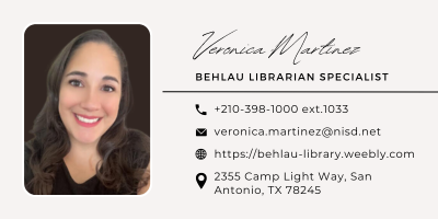 I am so eager to serve the Behlau Elementary community as their NISD librarian. My passion is to instill the love of reading and have high hopes that students realize that learning never ends.