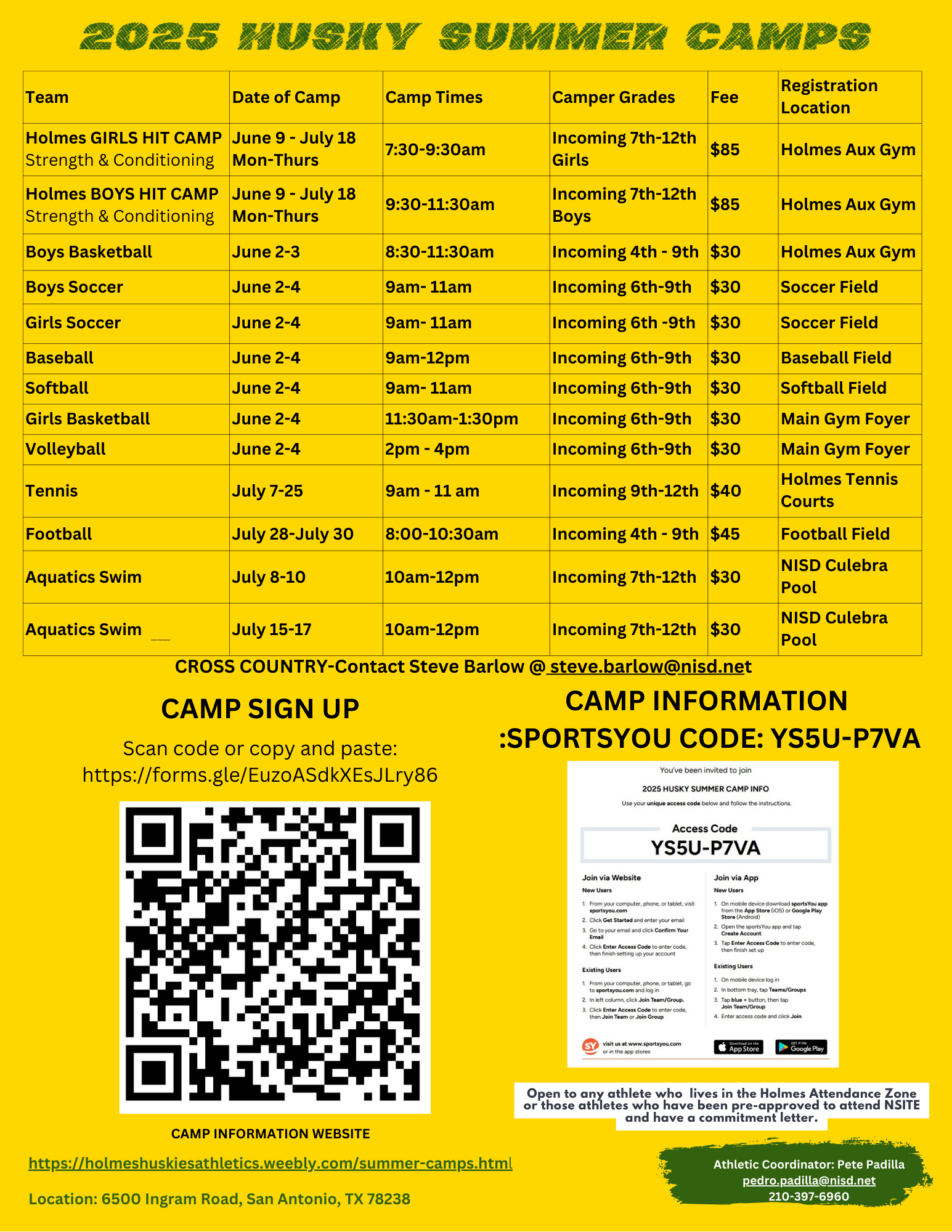 | Wednesday | 12/31/2025 | 2:30PM | Sotomayor HS | Away | Basketball(M) | Holmes HS | Northside Gym - BB | TICKETS |