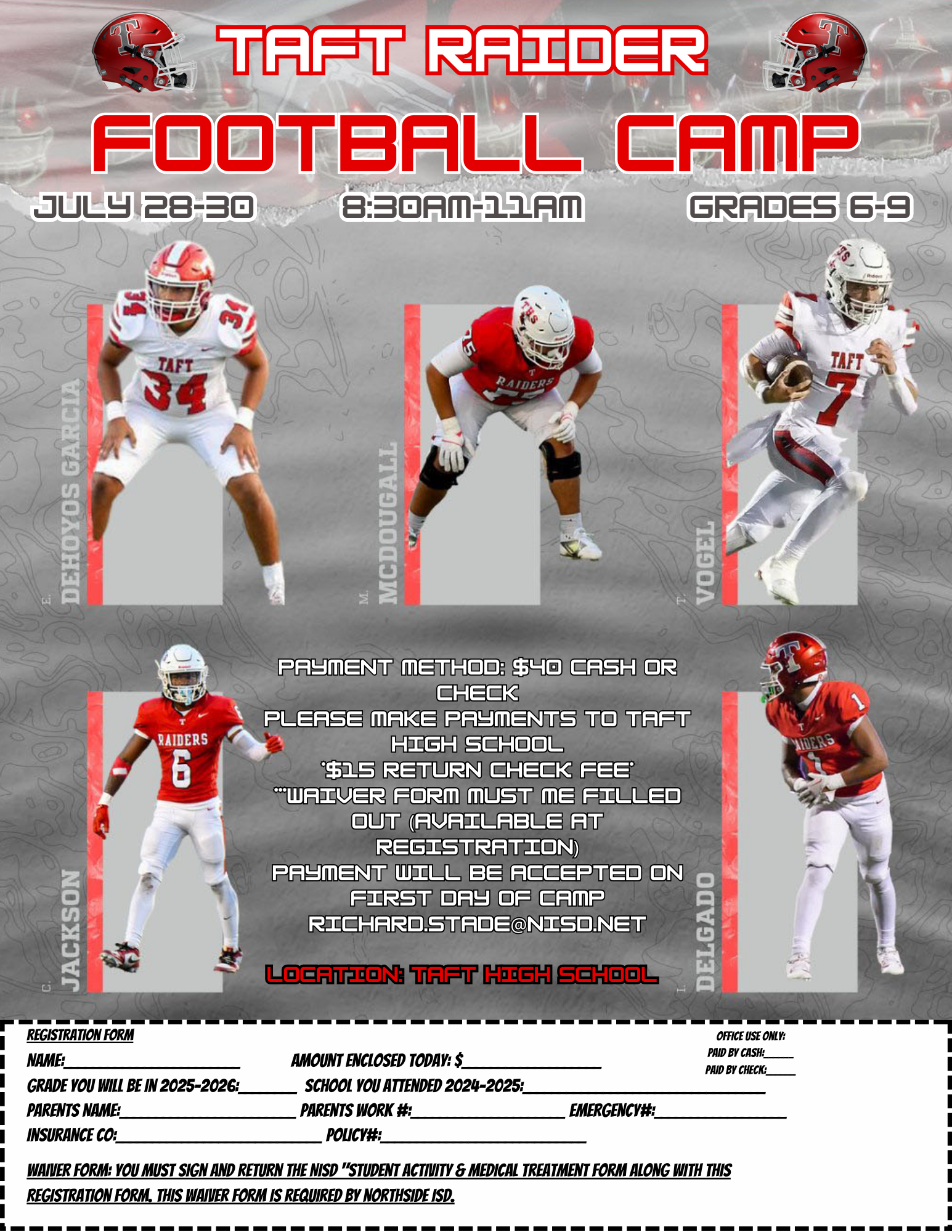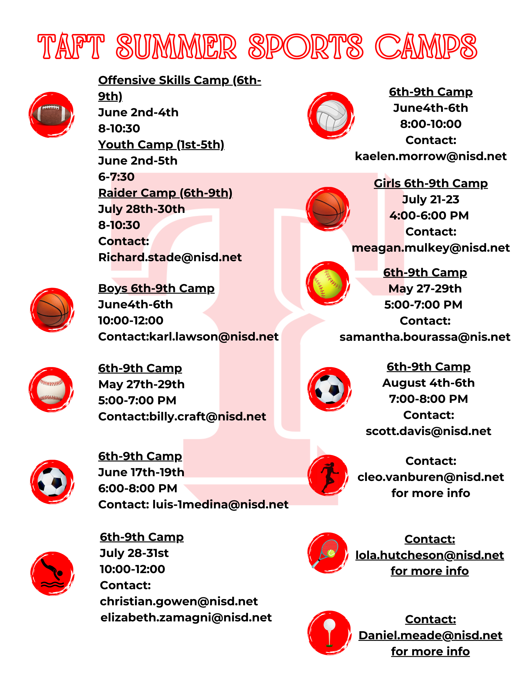 | Tuesday | 1/6/2026 | 5:00PM | Taft HS | Home | Basketball(M) | Sotomayor HS | Northside Gym - BB | TICKETS |