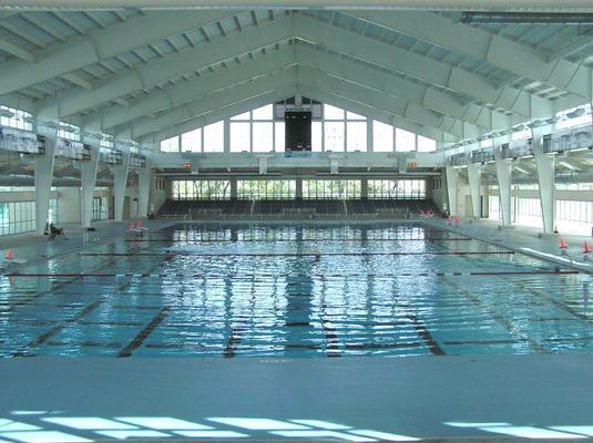 The facility has a 50 meter by 25 yard competitive pool, and also hosts public programs like fitness swim and swim lessons.