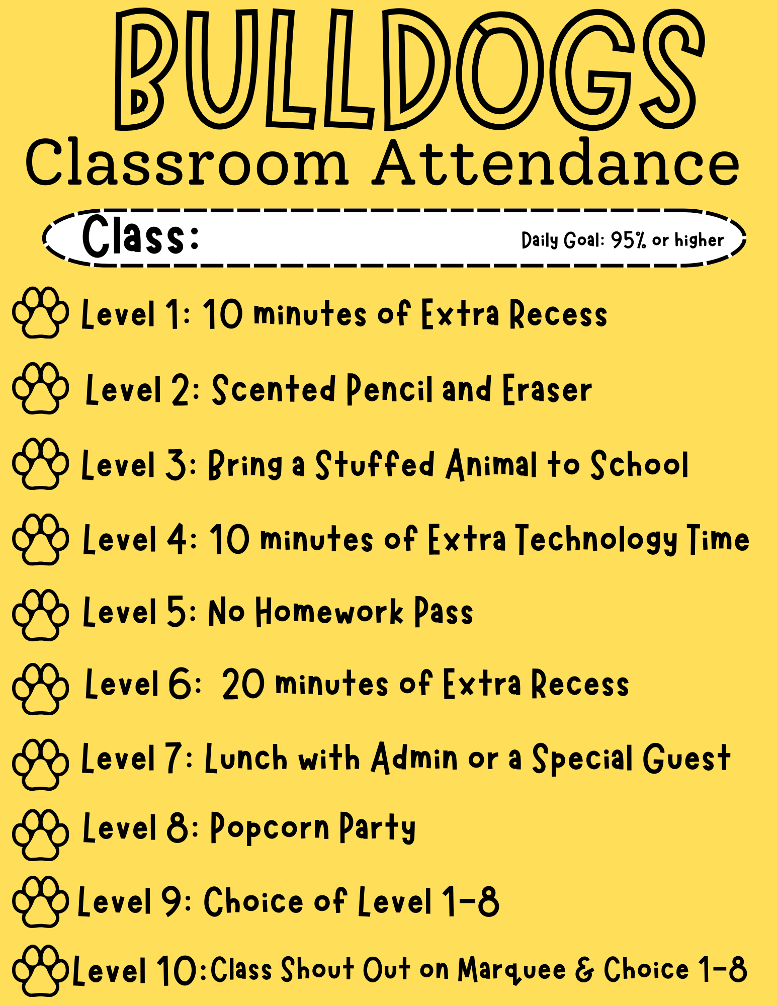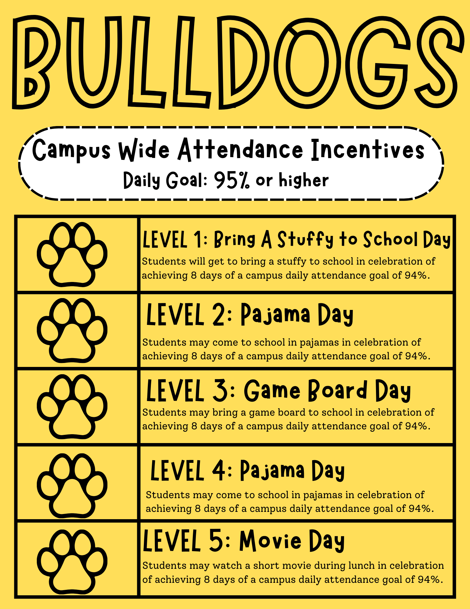 Take a look below! We are currently working as campus to LEVEL UP to Level 4 and earn a Pajama Day!