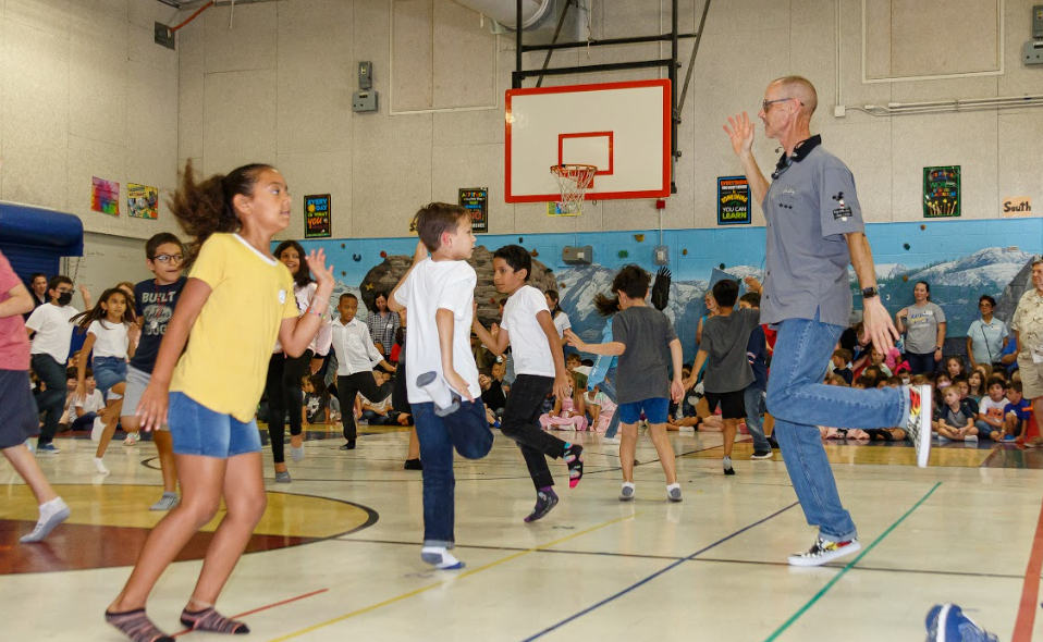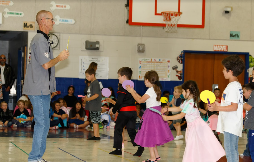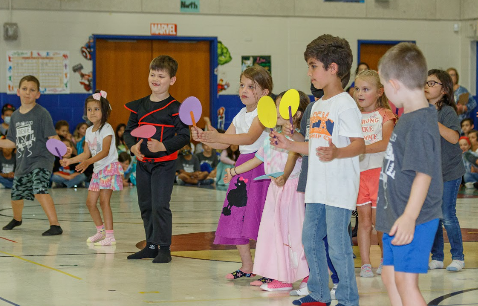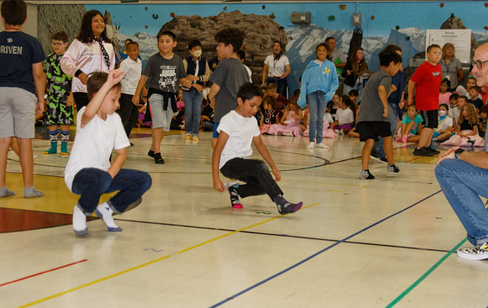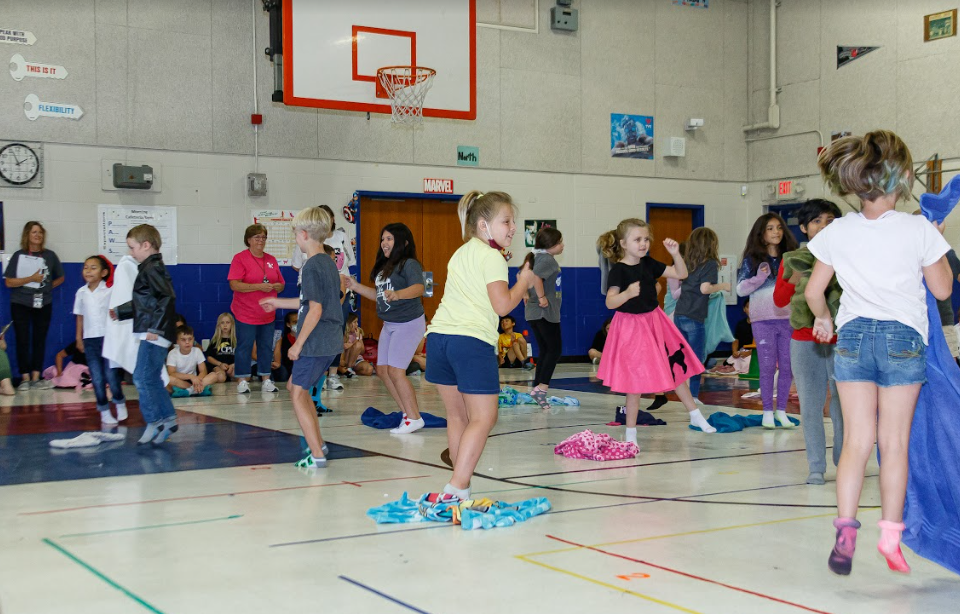 Our annual sock hop is a time honored tradition at Helotes! Each grade level does their own dance, led by our Coach.