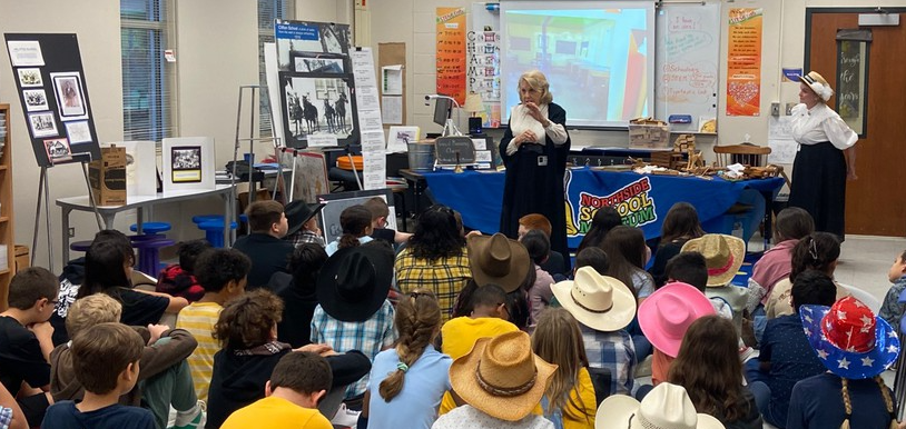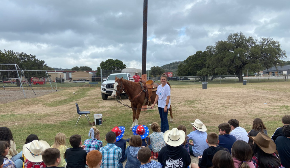 We celebrated Texas history at our Rodeo Roundup. We learned about raising and caring for animals from OCHS students, horse care and barrel racing, all about Sam Houston from Bill Perryman, and what life was like for cowboys in early Texas from the Witte. We also saw some awesome trick roping from Kevin Fitzpatrick. We made butter, played games, and danced to some classic country songs. Just another great day at Helotes Elementary!