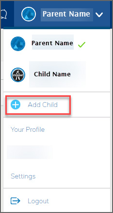- Click on the arrow in the upper-right corner of your account and select your child’s name.