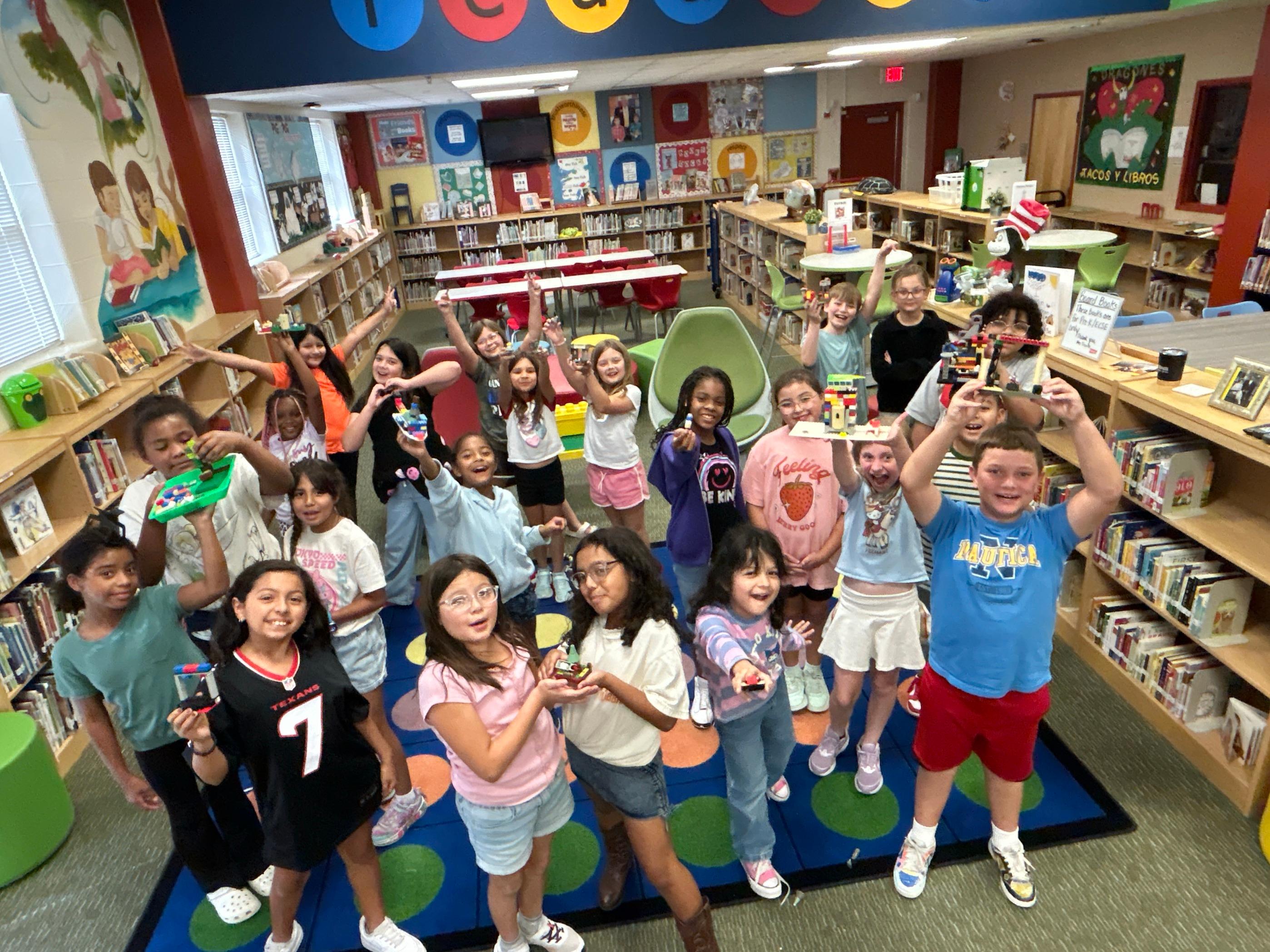 Students learn about space, astronauts, and rockets.