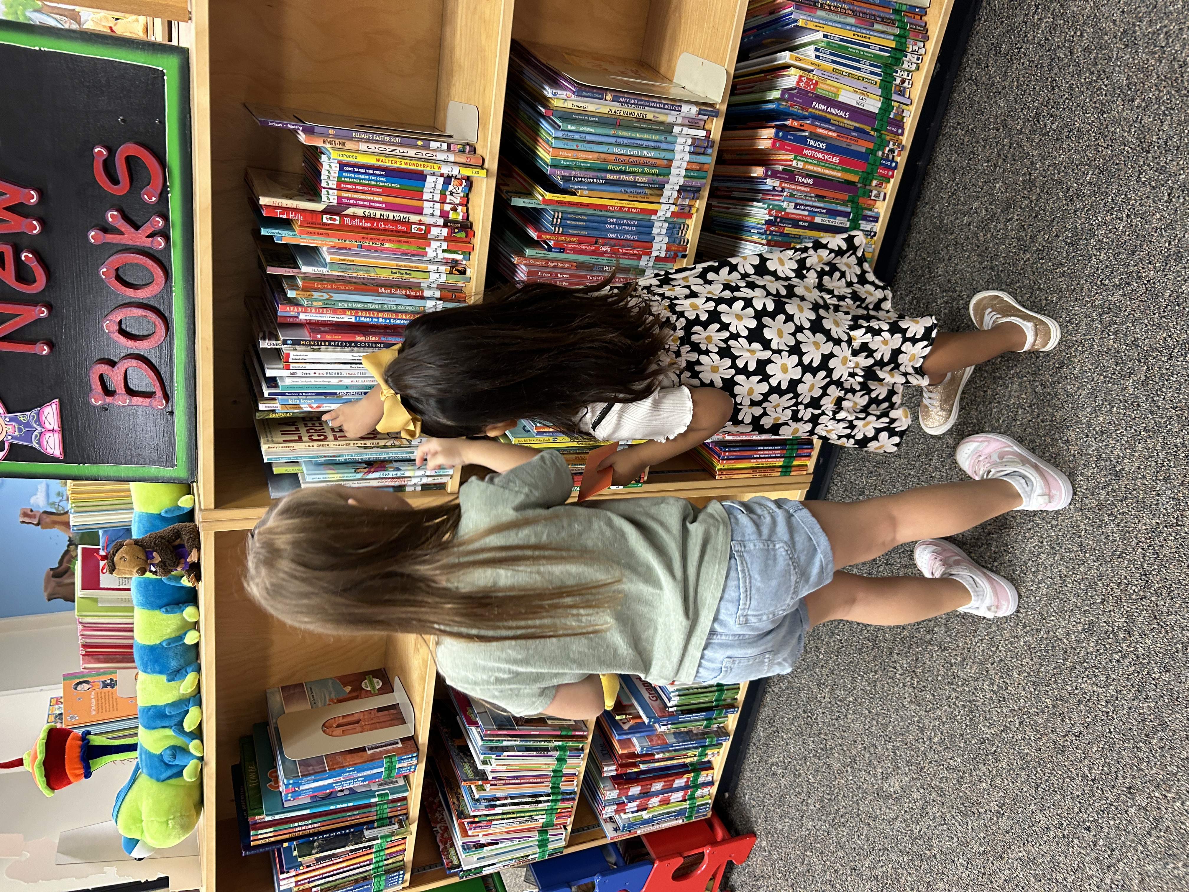 Each class has a scheduled library time each week. During this time, students self select books to check-out and read for their enjoyment. Teachers can also bring classes at other times for specific projects or to select books to support their classroom learning.