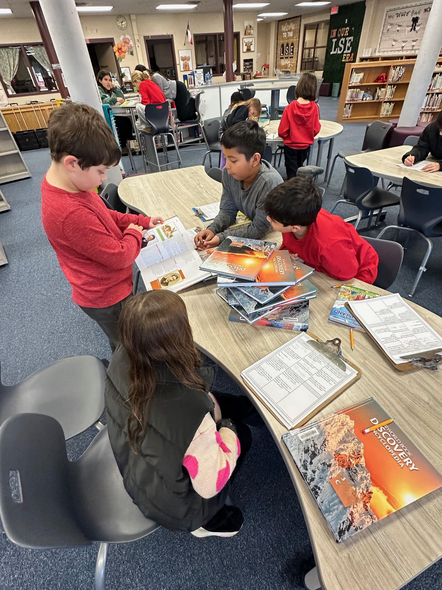 Students in grades PK through 5th visit the library roughly once a week with their homeroom class. Students in 3rd-5th grades are also able to come for self-checkout anytime there is not a class in the library.