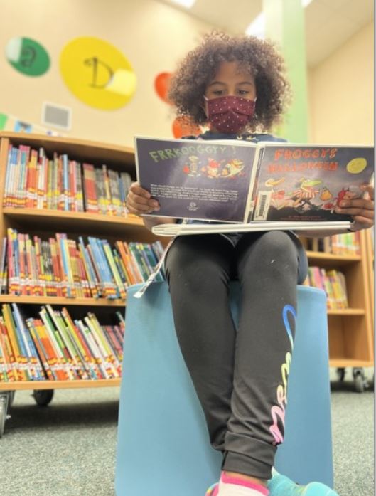 Students in Pre-k-1st checkout one book at a time.