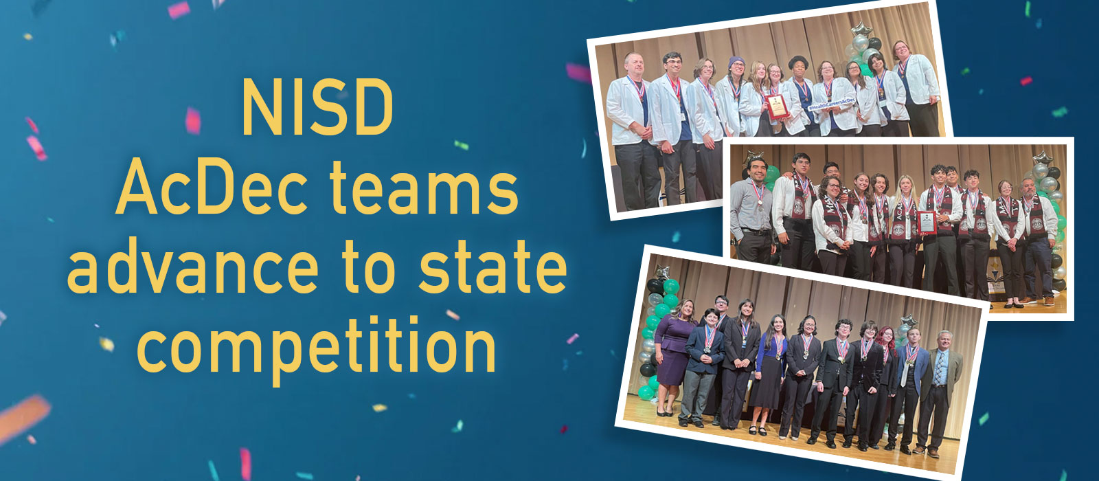 The next 40 top performing schools from across the state head to the Frisco Invitational Meet in Frisco on Feb. 23-25. NISD Academic Decathlon teams advancing to this level are Health Careers, O’Connor, and Clark high schools.