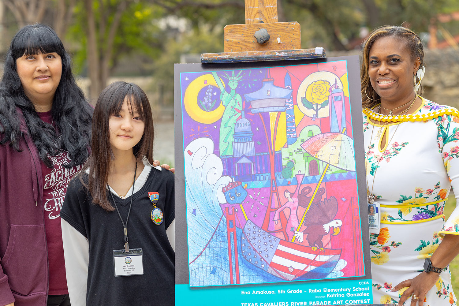 Three additional NISD artists are finalists in the 2024 Texas Cavaliers River Parade Art Contest. The grand prize winner and all finalists were chosen from thousands of entries from schools across the city to represent one of ten city council districts and one at-large position. Each finalist receives $3,000 for their school’s art program and a one-week summer scholarship to the Southwest School of Art. Their artwork will also be showcased as a wrap on a Via bus for six months. The finalists are Isabella Gomez, a fifth-grade student at Forester Elementary School; Miabella Beene, a fifth grader at Steubing Elementary School; and Tudor Seitan, a fifth grader at Carnahan Elementary School.