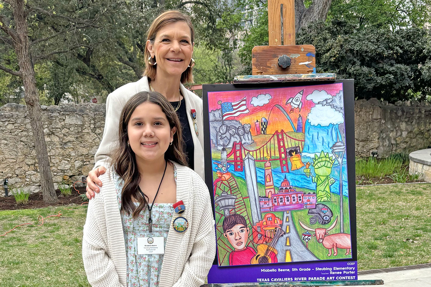 Ena Amakusa, a fifth-grade student at Raba Elementary School, is the grand prize winner in the 2024 Texas Cavaliers River Parade Art Contest.
