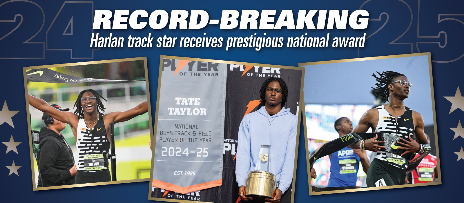 In a surprise presentation, Tate Taylor, a rising senior at Harlan High School, was named the 2024-25 Gatorade National Boys Track & Field Player of the Year.
