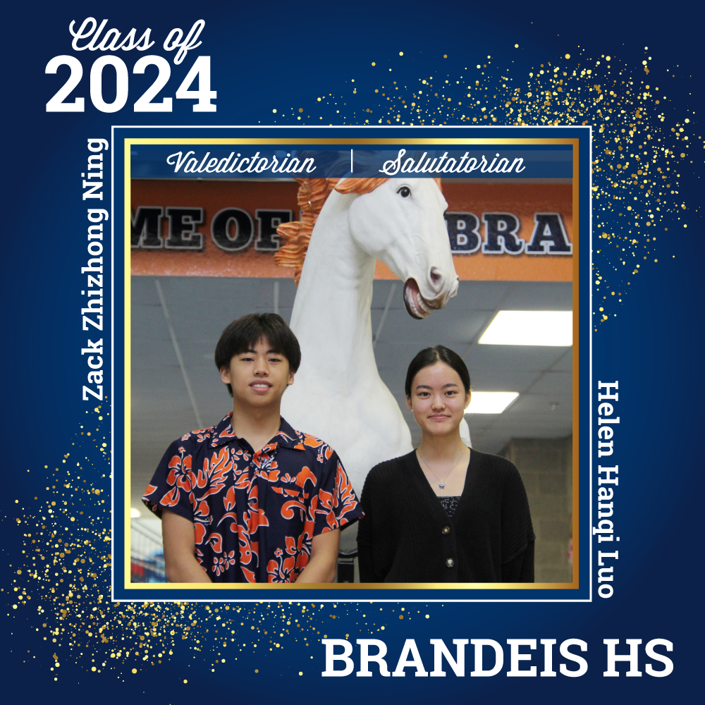 Zack Ning is the valedictorian of Brandeis High School. He plans to attend the United States Military Academy in West Point, NY, majoring in Business/Computer Science with his future career still undecided.