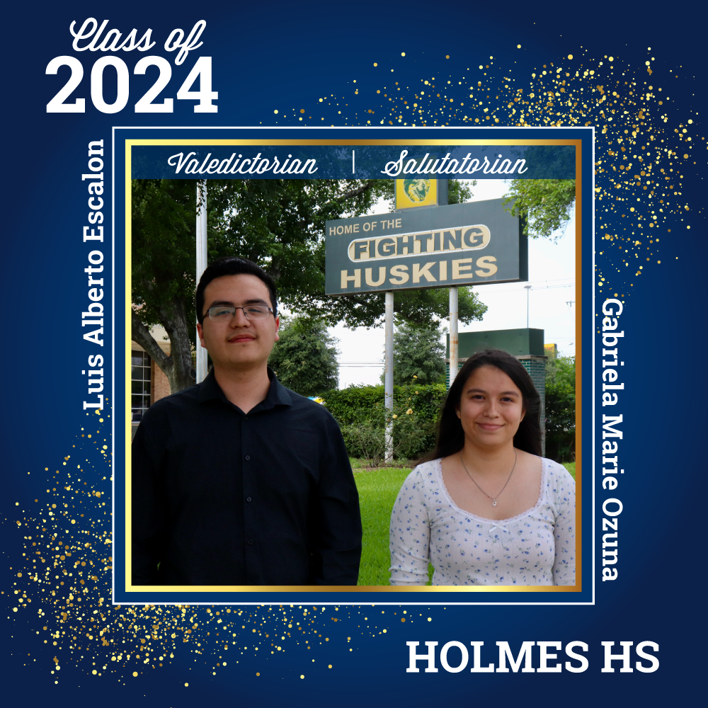 Luis Escalon, valedictorian of Holmes High School, will be attending either UTSA or the University of Incarnate Word in San Antonio, majoring in Pre-Medicine.