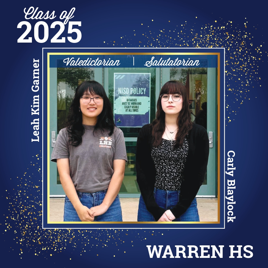 She credits Mr. Gregory Combs, her AP Biology and AP Environmental Science teacher at Warren, as her most influential NISD teacher. “With his lighthearted demeanor and funny sense of humor, he makes all students feel welcome. He has been most influential to me throughout my junior and senior years.”