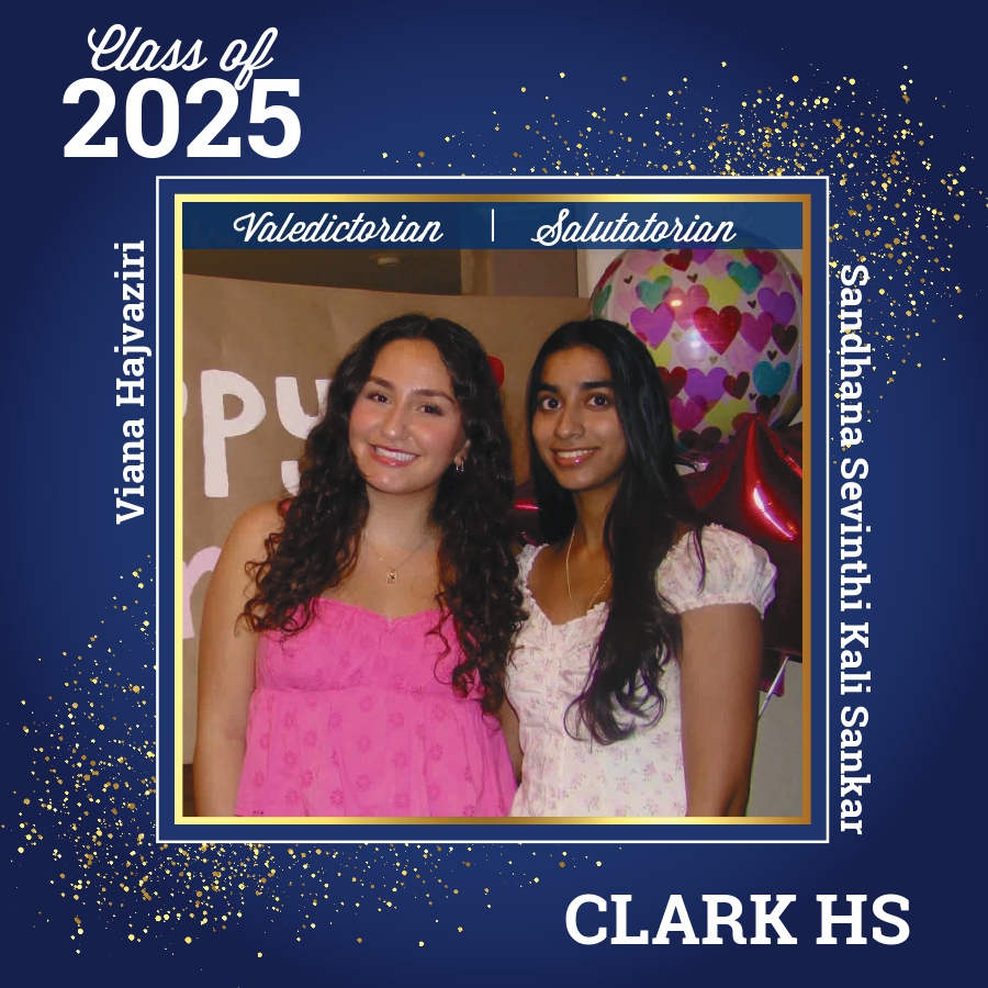 Viana Hajvaziri is the valedictorian of Tom C. Clark High School. She will attend the University of Texas at Austin, pursuing a Bachelor of Science degree in Biology, with plans to become a physician.