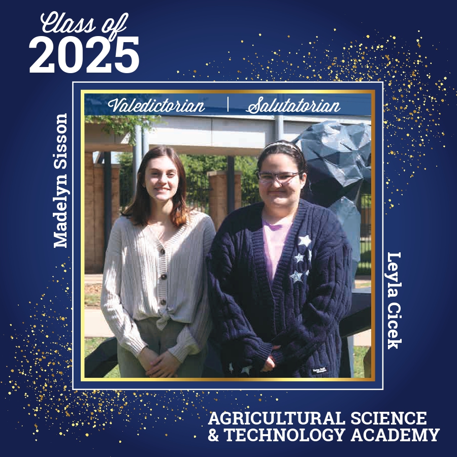 Leyla Cicek is the salutatorian of the Agricultural Science and Technology Academy. She plans to attend Northwest Vista College and the University of Texas at San Antonio, majoring in History and pursuing a career as a history teacher and librarian.
