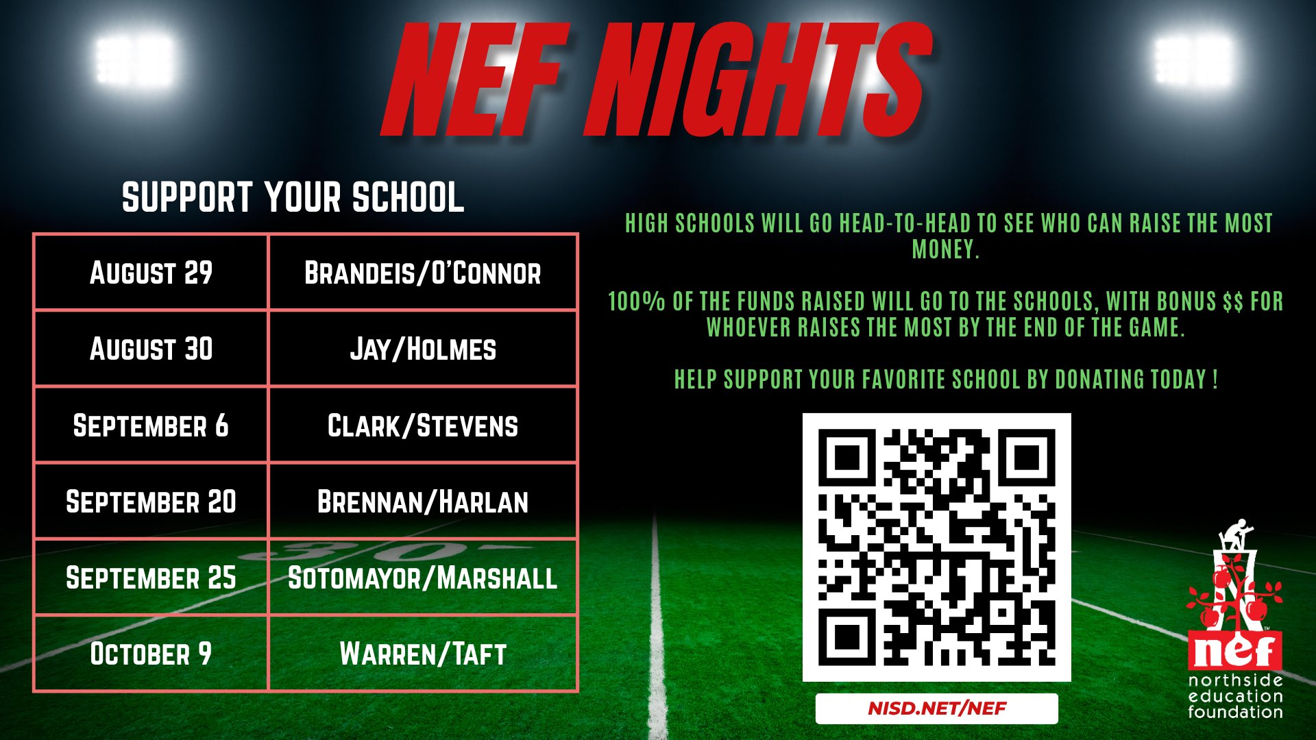 The Northside Education Foundation (NEF) Innovation Cycle 1 Grant (up to $5,000) aims to fund creative, diverse, modified, and unique projects that positively impact students and staff. Click here to apply or contact the Grants Dept. at 210-397-8563