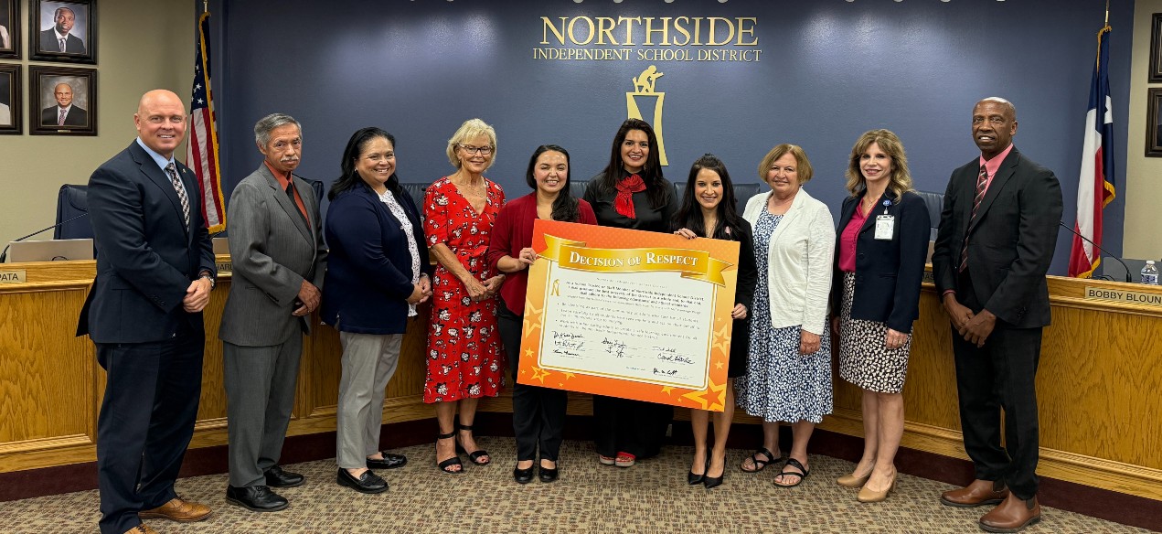 On Oct. 3, all NISD students and staff will be invited to sign a Decision of Respect as part of the District’s anti-bullying initiatives. Counselors have been equipped with training, materials, and lessons for classroom presentations that teach necessary skills to students to promote a safe, respectful, and healthy school climate. Members of the Board of Trustees signed their own Decision of Respect as a show of support for the program spearheaded by the NISD Counseling Department, led by Elizabeth Flores. Dr. Craft signed on behalf of the NISD staff.