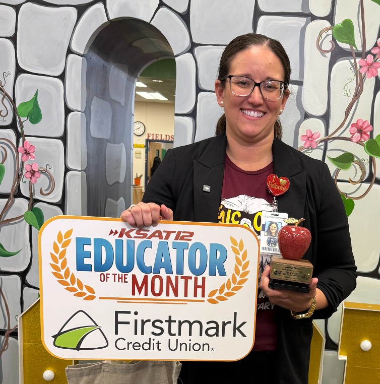 With many moving pieces happening simultaneously, the campus was able to keep the surprise from Fields Elementary School Principal Ileana Perez, which was that she was receiving the KSAT Educator of the Month award. Reporter Stephanie Serna presented the award to her in front of Dr. John Craft, representatives of Firstmark Credit Union (the sponsor of the award), family members, students, and staff.