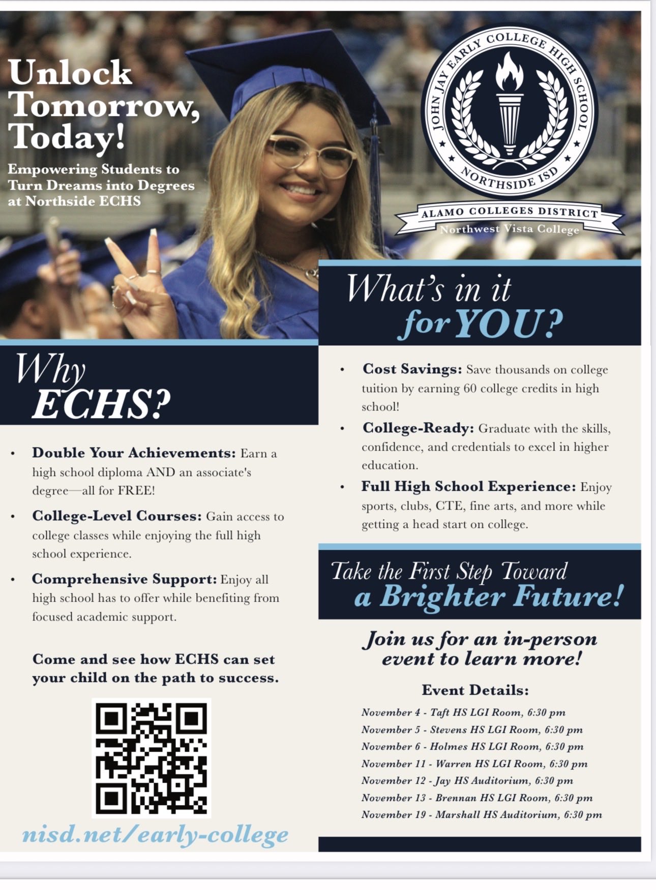 Visit nisd.net/Early-College for session dates and details.