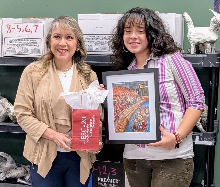 Congratulations to two of our Northside art students for winning their division in the ESC Region 20 Holiday Card Contest. Winning the elementary division is Max Martinez, a fifth grader at Timberwilde ES. Max's teacher is Tony Garcia. Winning the high school division is Nicole Velazquez, a ninth grader at Stevens HS. Nicole's teacher is Matthew Hedlund. Both students received a swag bag including a Visa gift card. Way to go to represent Northside ISD!