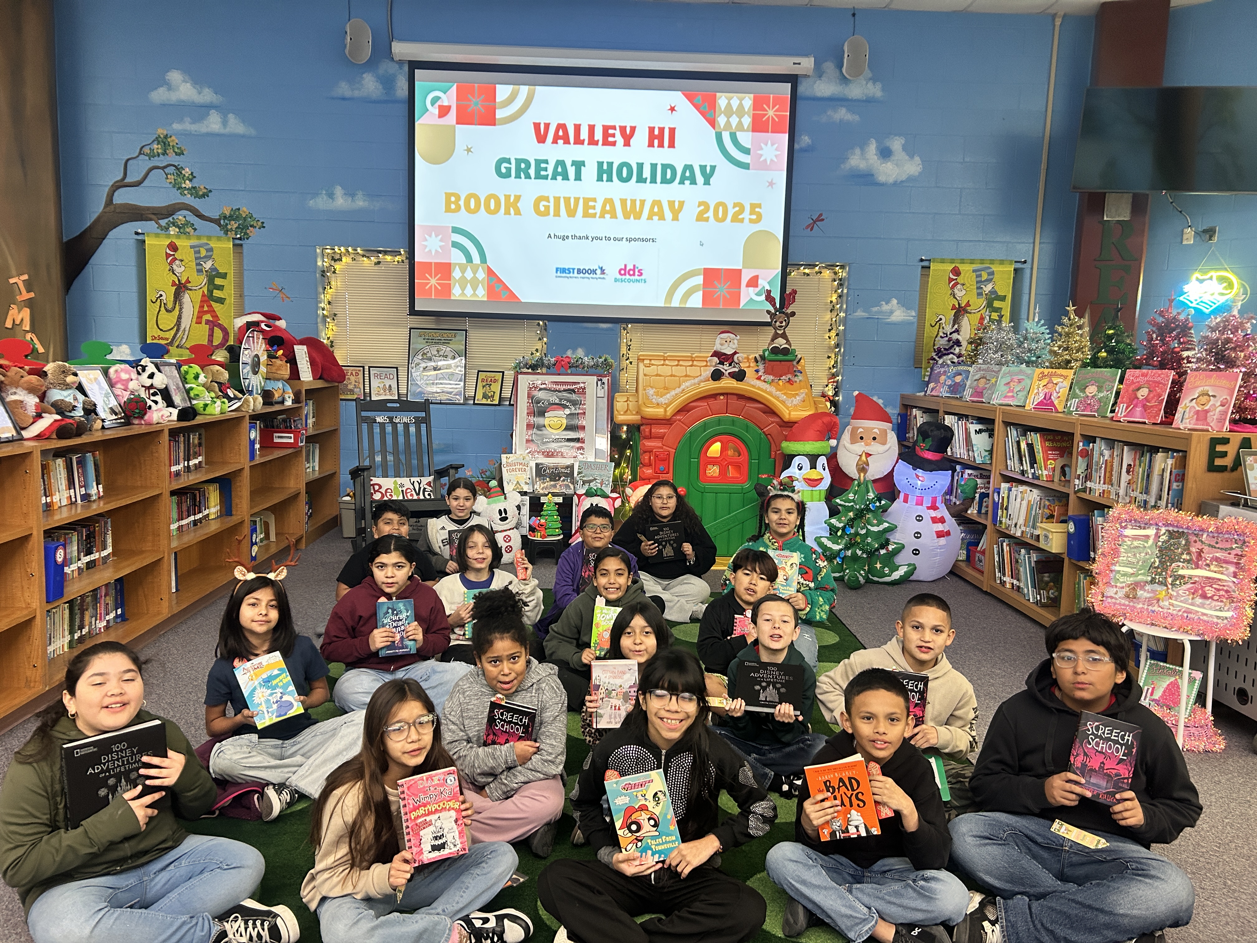 On Tuesday, Dec.16, Valley Hi librarian Jennifer Grimes hosted a school-wide Holiday Book Giveaway, inviting every student to visit the library and select a brand-new book to keep. Thanks to DD’s Discounts’ annual Literacy Fundraiser and First Book Marketplace resources, students chose from hundreds of titles and received a scented bookmark courtesy of Communities in Schools Site Coordinator Abigail Crotts. Events like this reflect Mrs. Grimes’ ongoing commitment to inspiring Valley Hi Woodchucks to read—especially over winter break.