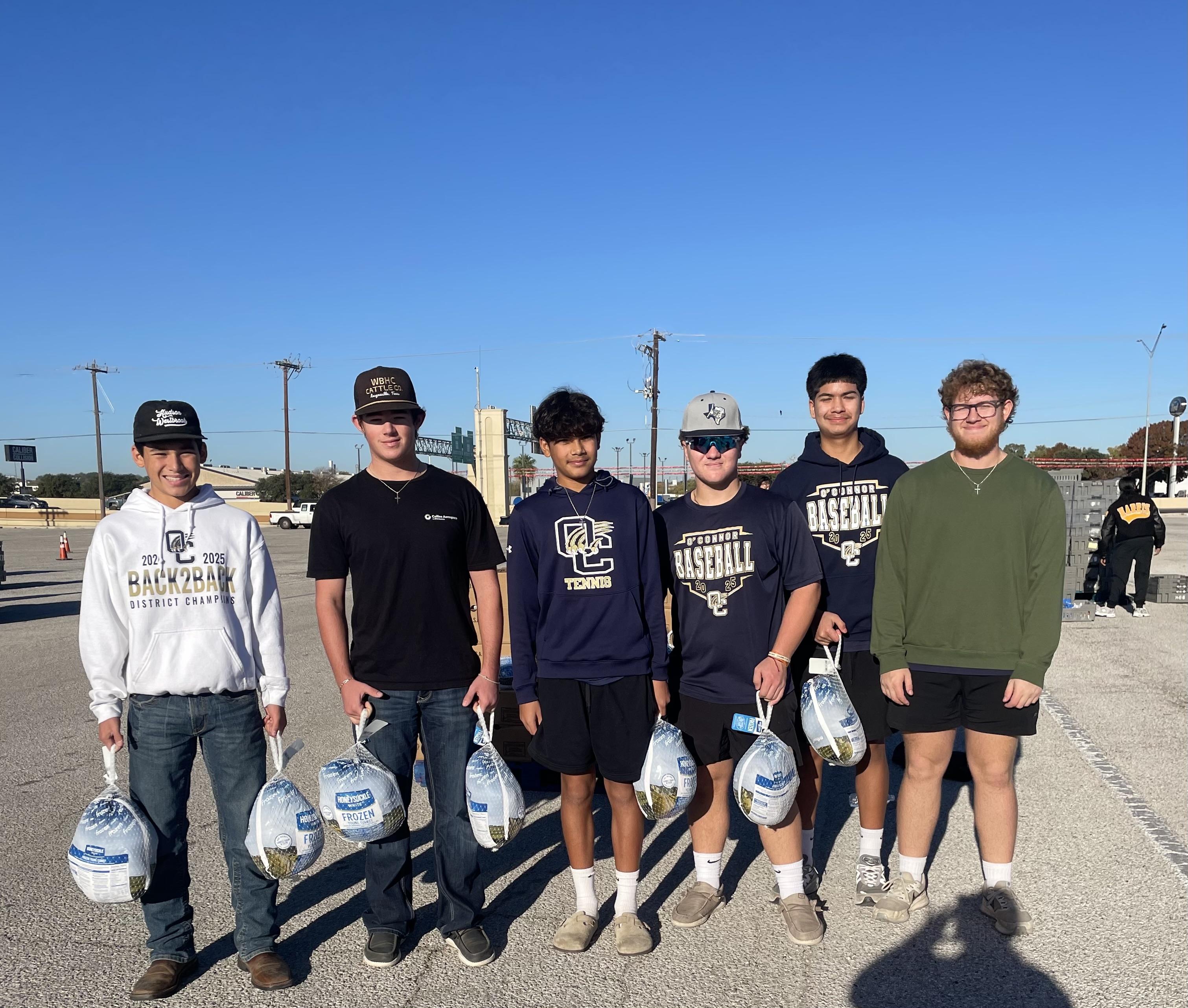 Recently, the O’Connor High School baseball team traded their bats for turkeys, joining hundreds of volunteers - including various Northside ISD student groups and other athletes – in a massive effort to distribute critically needed food to 900 families in the community.