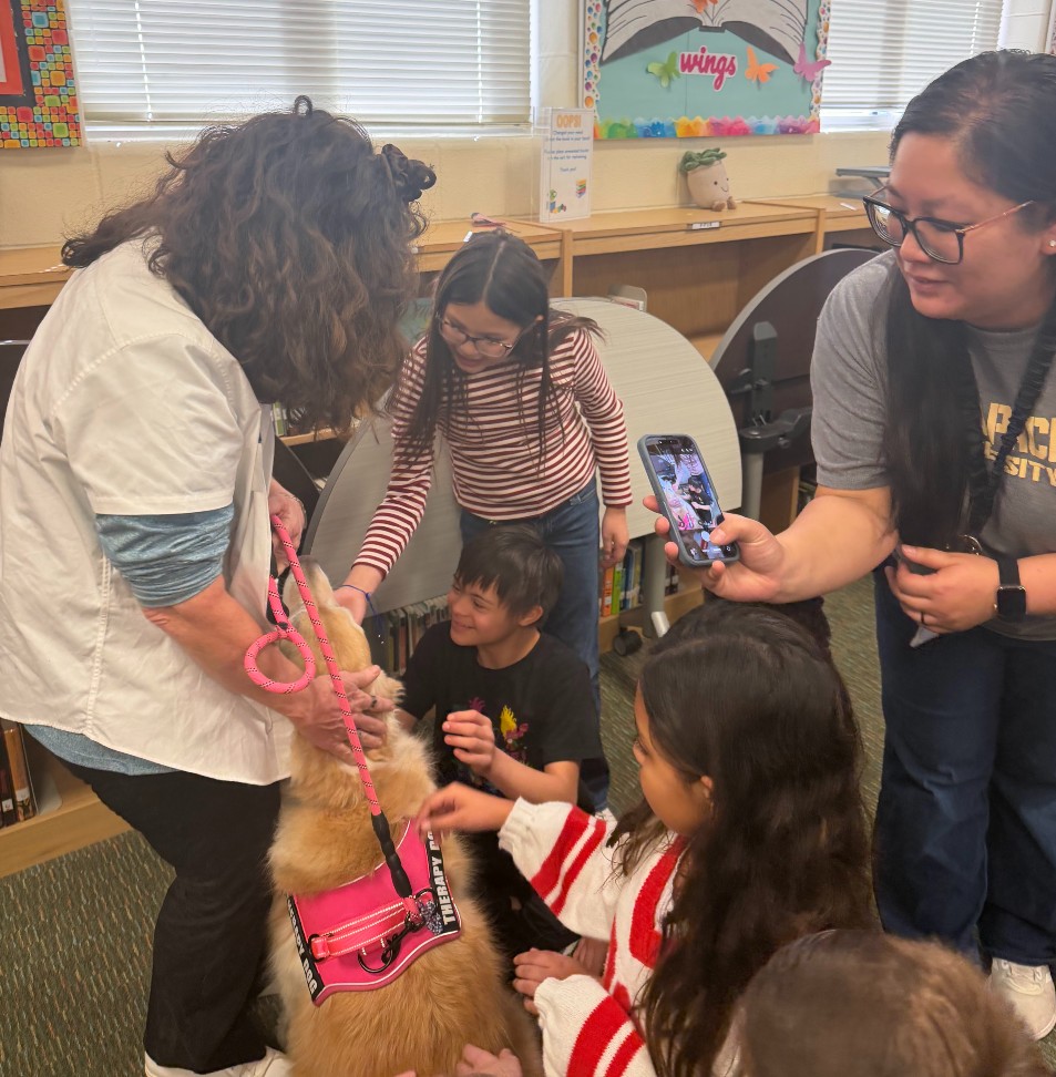 To celebrate the book’s themes, a therapy dog from Therapy Animals of San Antonio surprised students, making the experience both memorable and meaningful.