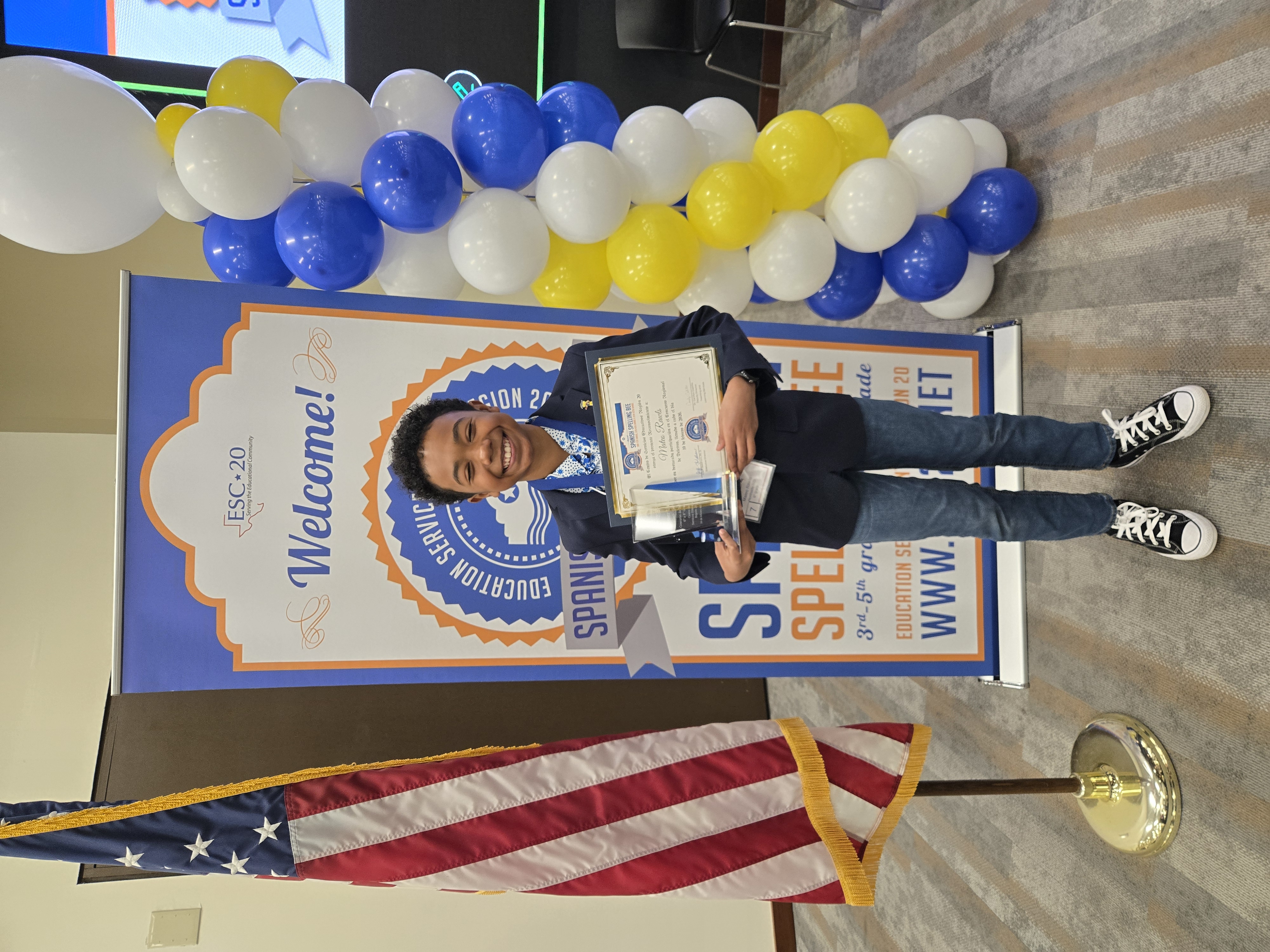 Three NISD students participated in the ESC-Region 20 Spanish Spelling Bee. Mateo Rawls, a student at Briscoe Middle School, brought home the gold by placing first at the middle school level. The winning word? Cúspide. This is Rawls's second time, after placing first last year in the elementary competition.