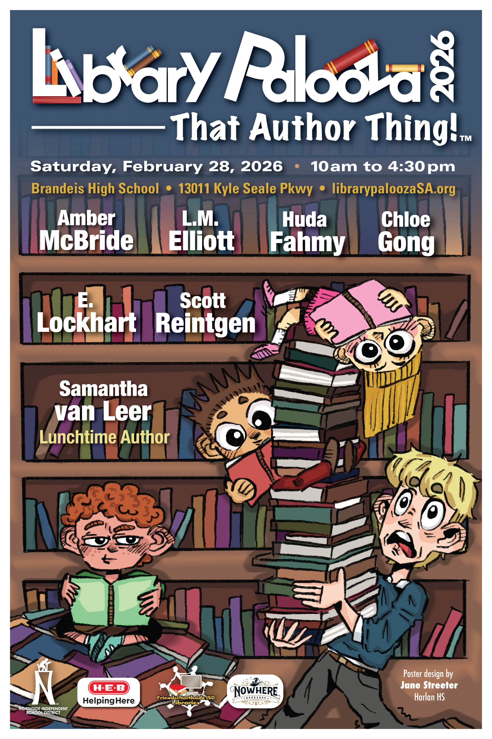 The “LibraryPalooza, That Author Thing!” will be held from 10 a.m. to 4:30 p.m. on Saturday, Feb. 28, at Brandeis HS. Doors open at 9 a.m. LibraryPalooza is a chance for readers to meet bestselling young adult authors through Q&A panels, breakout sessions, and book signings.