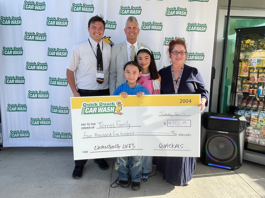 To celebrate the grand opening of its new Babcock Road location, Quick Quack Car Wash hosted a special fundraiser on Feb. 16, raising $4,500 for Pamela Torres and her family. The check was presented during the Feb. 17 ribbon-cutting ceremony, made possible through generous community donations and a corporate match. We are deeply grateful for their outstanding partnership and commitment to our families.