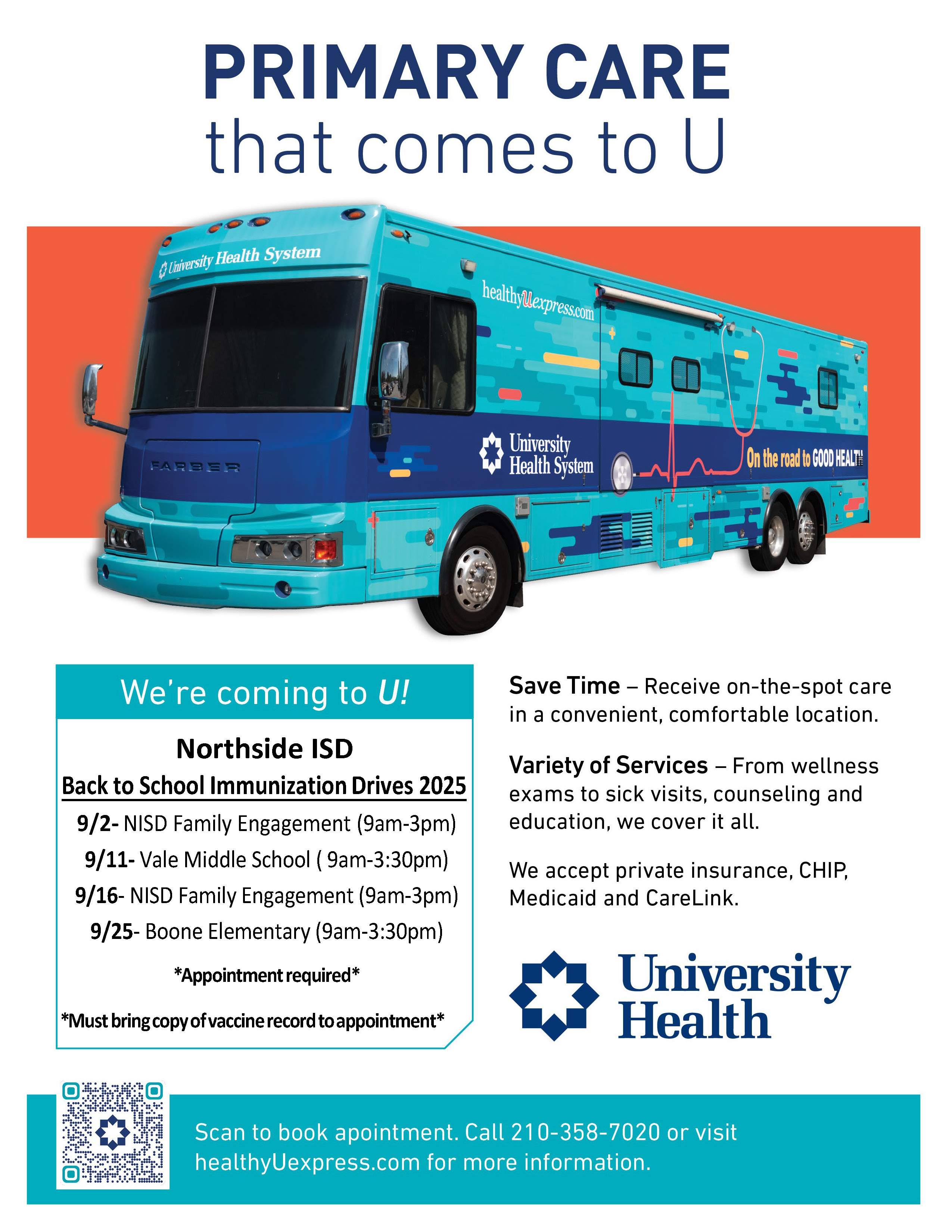 Mrs. Diaz, Family Liaison 210-397-3123 martha.diaz@nisd.net