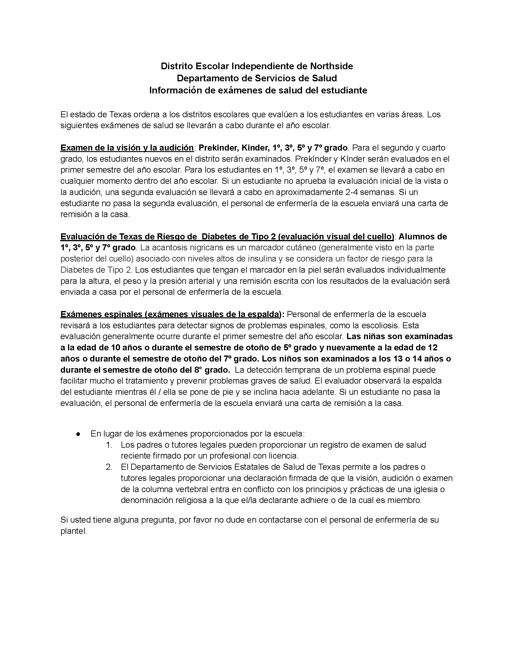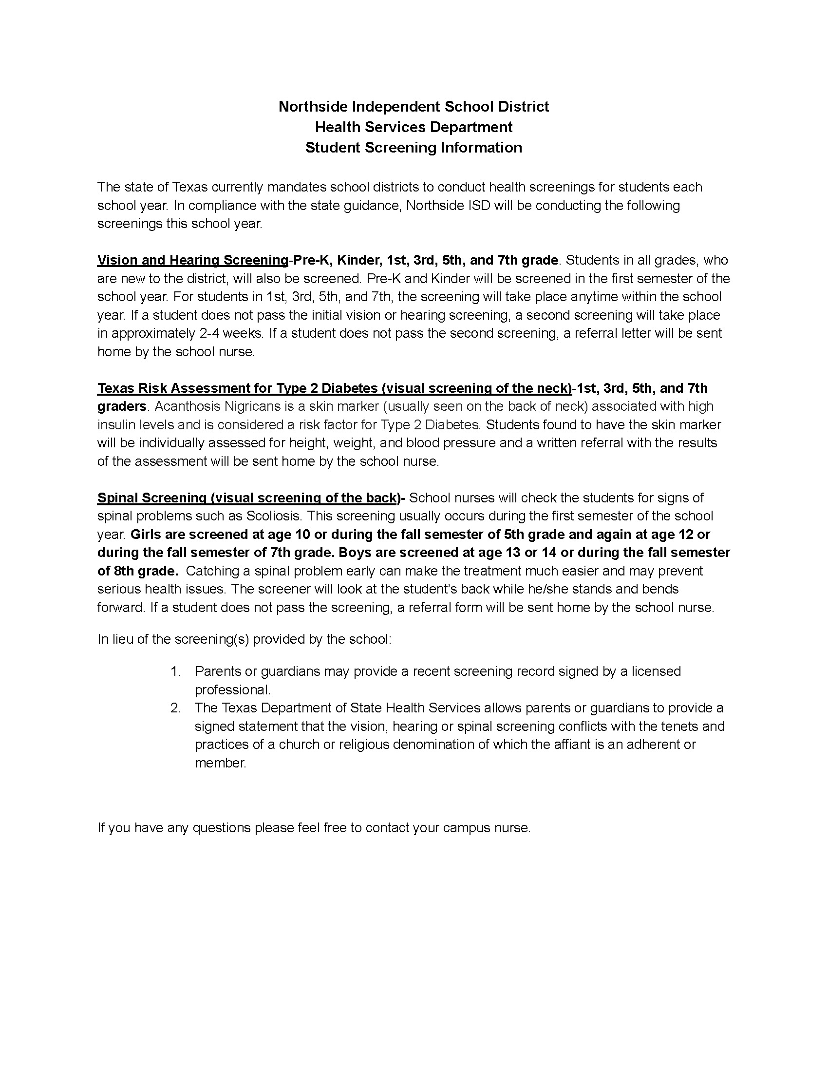 Screenings will be conducted throughout the school year. If you have any questions or concerns please contact the Rayburn Clinic.