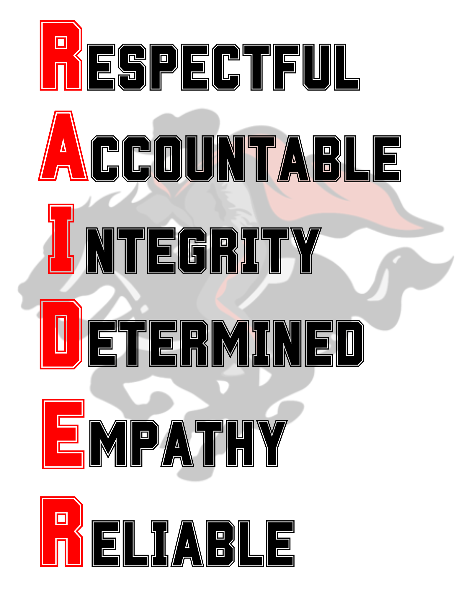 The RAIDER of the Week Initiative is designed to celebrate students who exemplify the core values we cherish. Throughout the week, staff members are on the lookout for students who demonstrate one of the six key RAIDER behaviors.