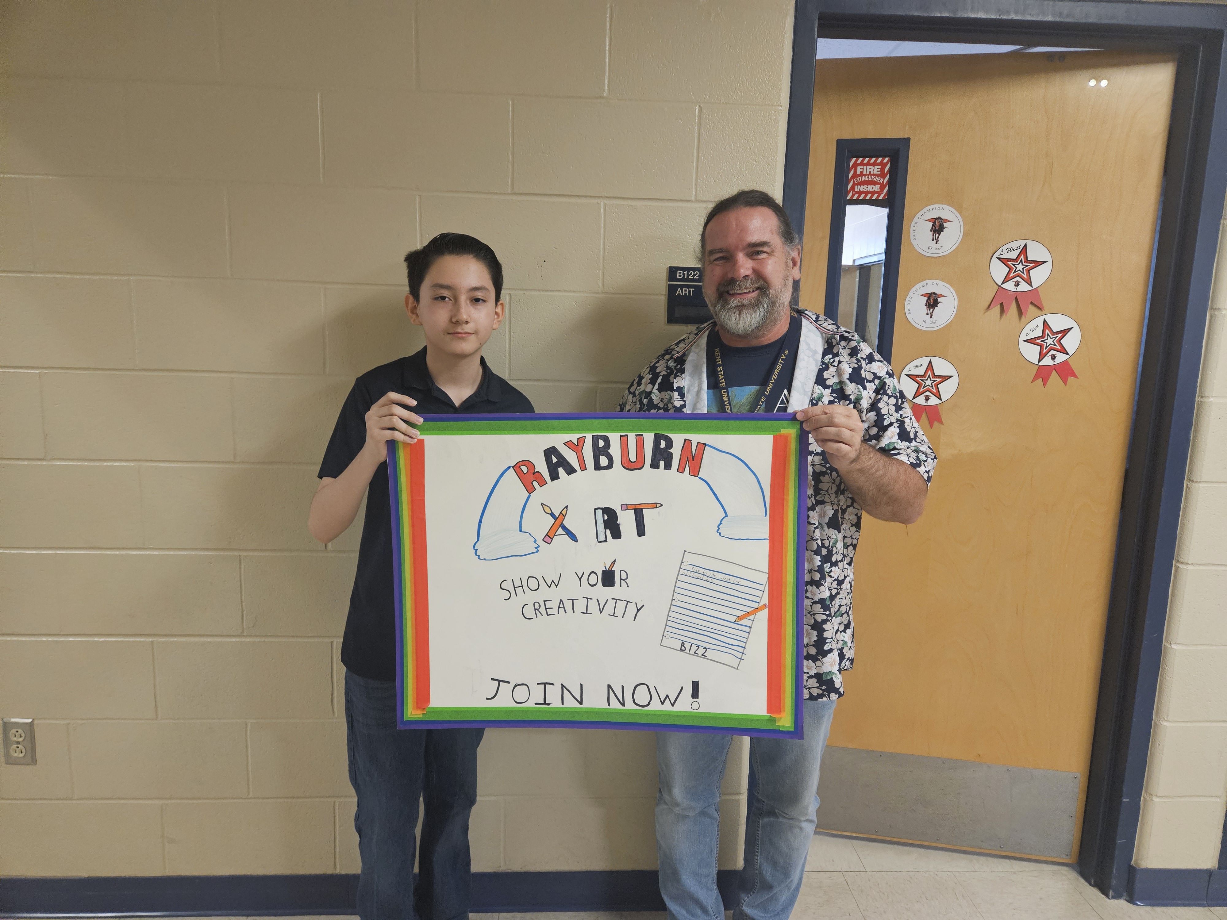 Every year, the 7th grade GT students make posters to support and promote the Rayburn clubs and electives as an introduction to their role in their community. The kids worked hard and were excited to deliver them to their teachers/sponsors. This is just a small way to say thank you and show our support!