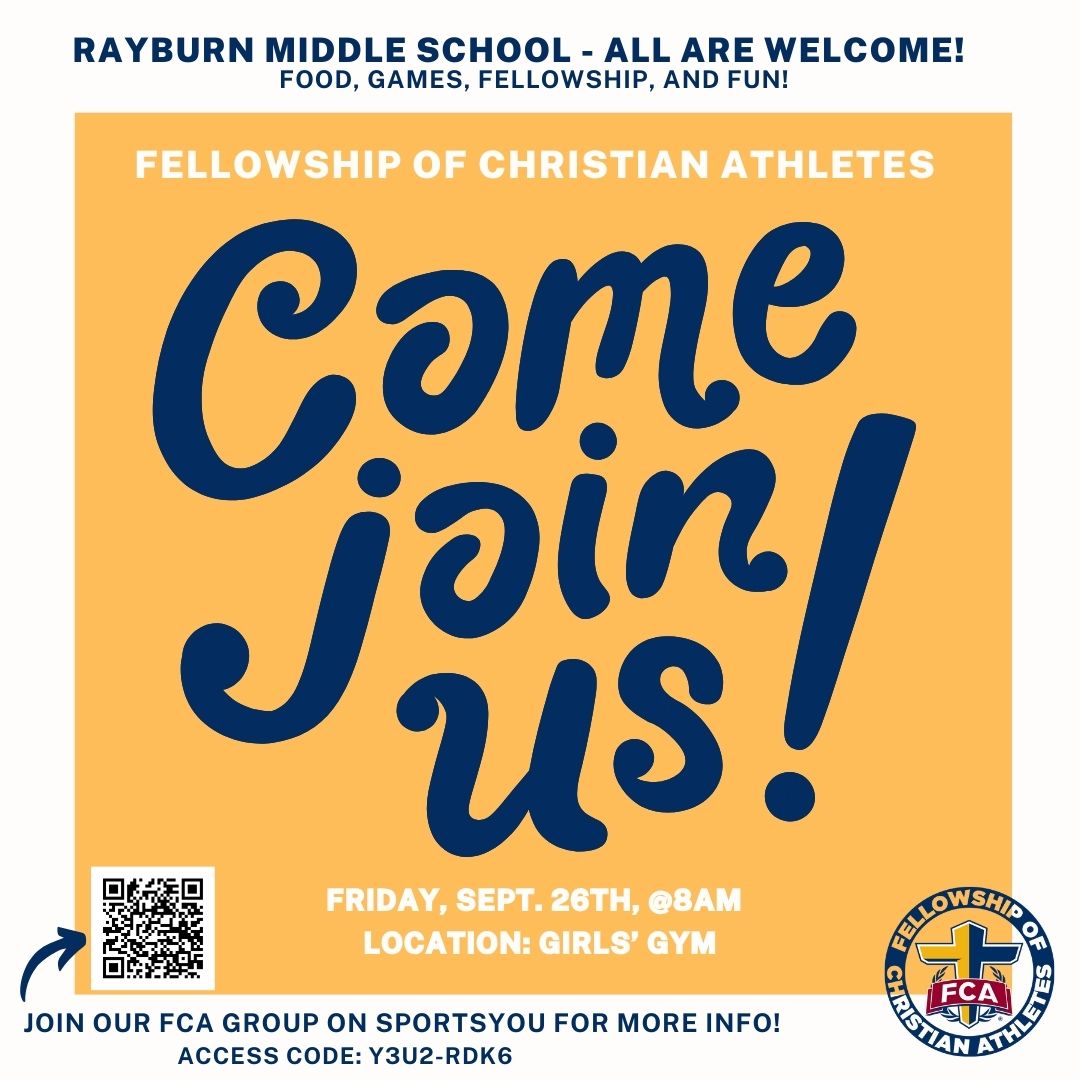 You’re invited to join us for FCA (Fellowship of Christian Athletes)! 🏐🏀⚽🏈🏃🏻♀️🎾