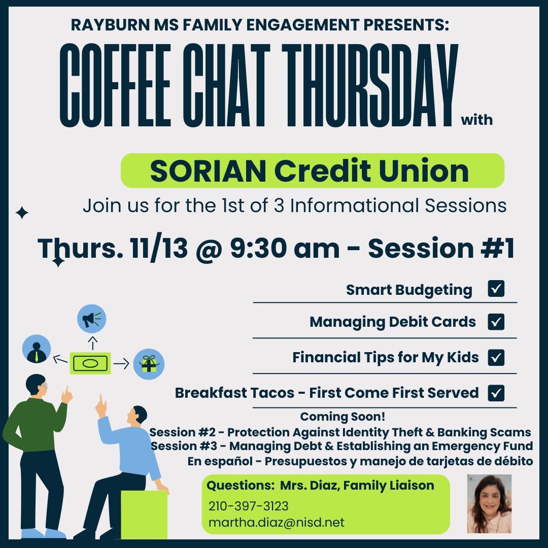 Join us in November for some great Coffee Chats including topics on Women's Health and a great session from our friends at SORIAN Credit Union. We can't wait to see you!
