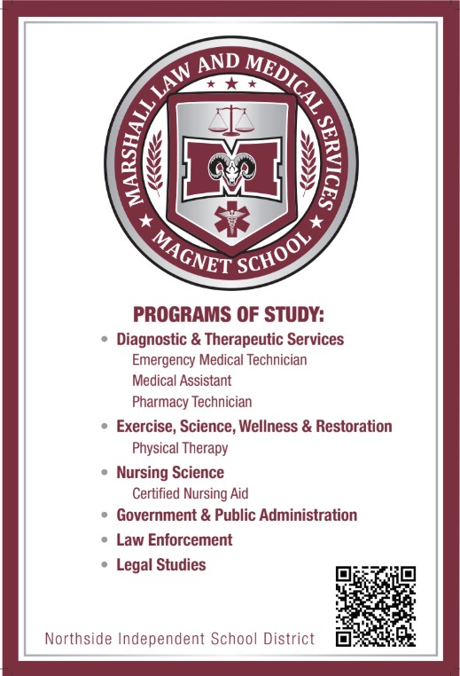 Marshall Law and Medical Services High School will be on campus Friday, November 14th. They will be located in Lower E building from 8:00-8:30. We invite all 8th graders to come check out what they have to offer.