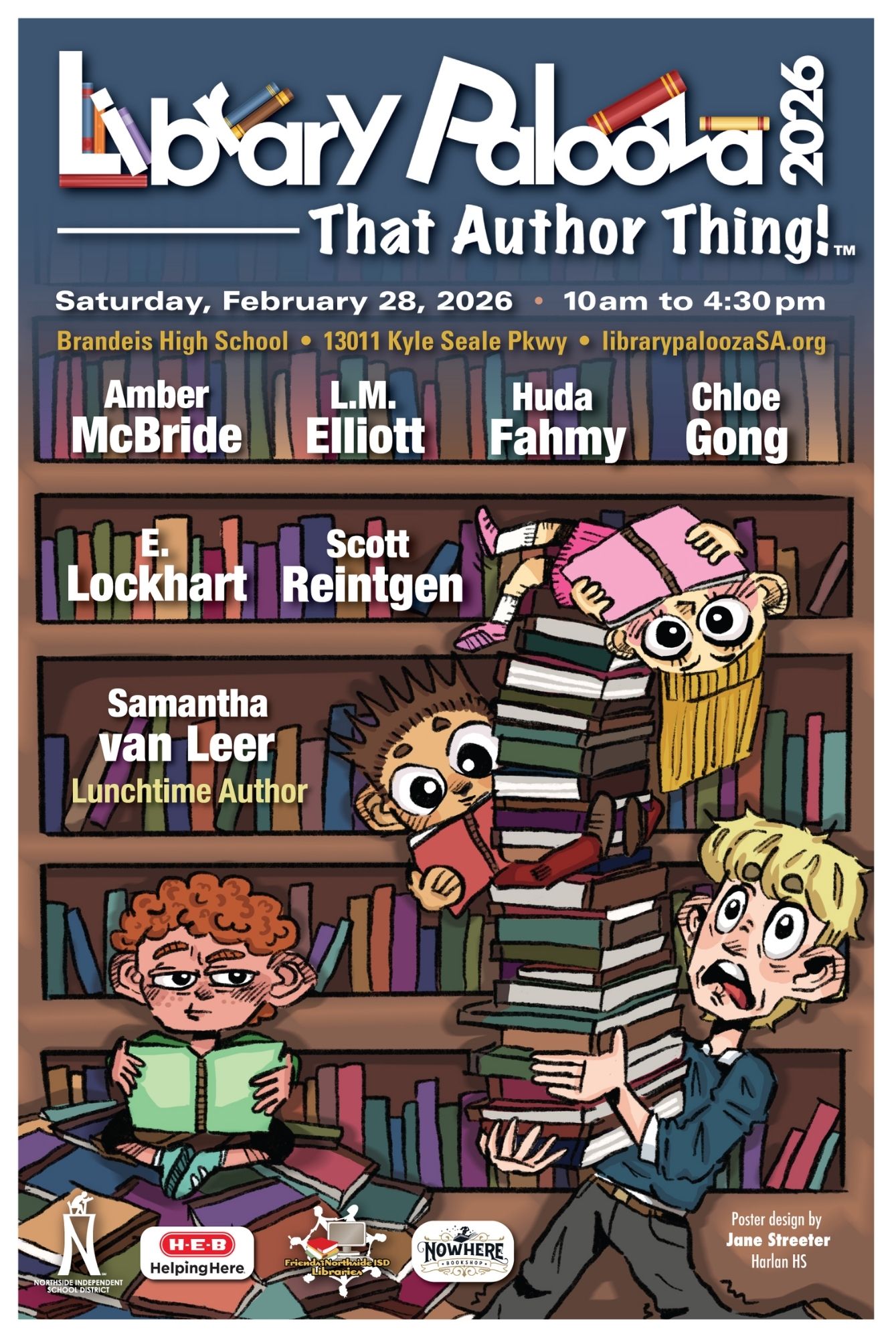 LibraryPalooza is a FREE author festival for teens in Northside ISD that is also open to the public, making it a great opportunity for middle and high school students and their families to attend together. The event will be held at Brandeis High School on Saturday, February 28, from 10:00 a.m.โ4:30 p.m., with doors opening at 9:00 a.m.