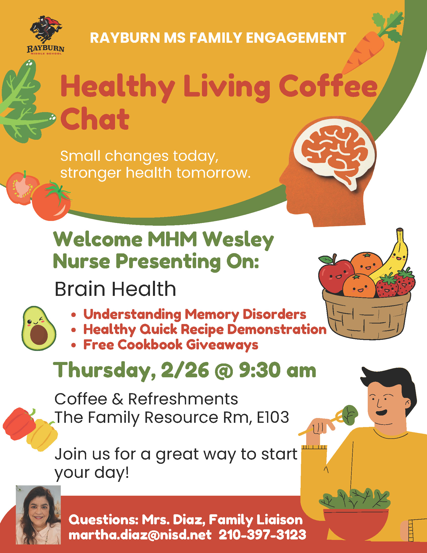 For any questions, contact Mrs. Diaz, Family Liaison at 210-397-3123.