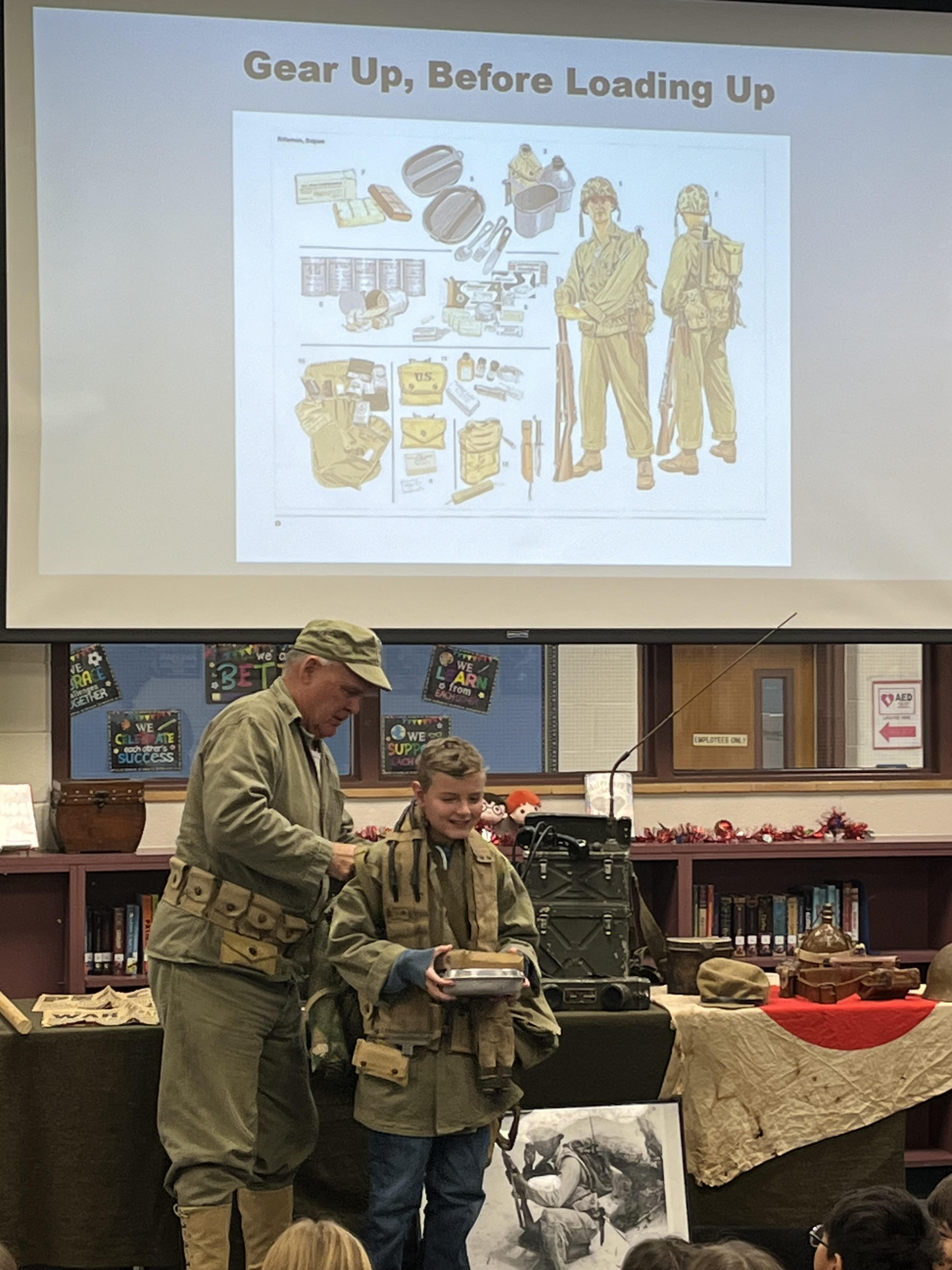 On November 27, 2023, 5th graders enjoyed a presentation from the National Museum of the Pacific War-Fredericksburg. One of the most interesting things was seeing all the different gear that a soldier had to carry and wear.