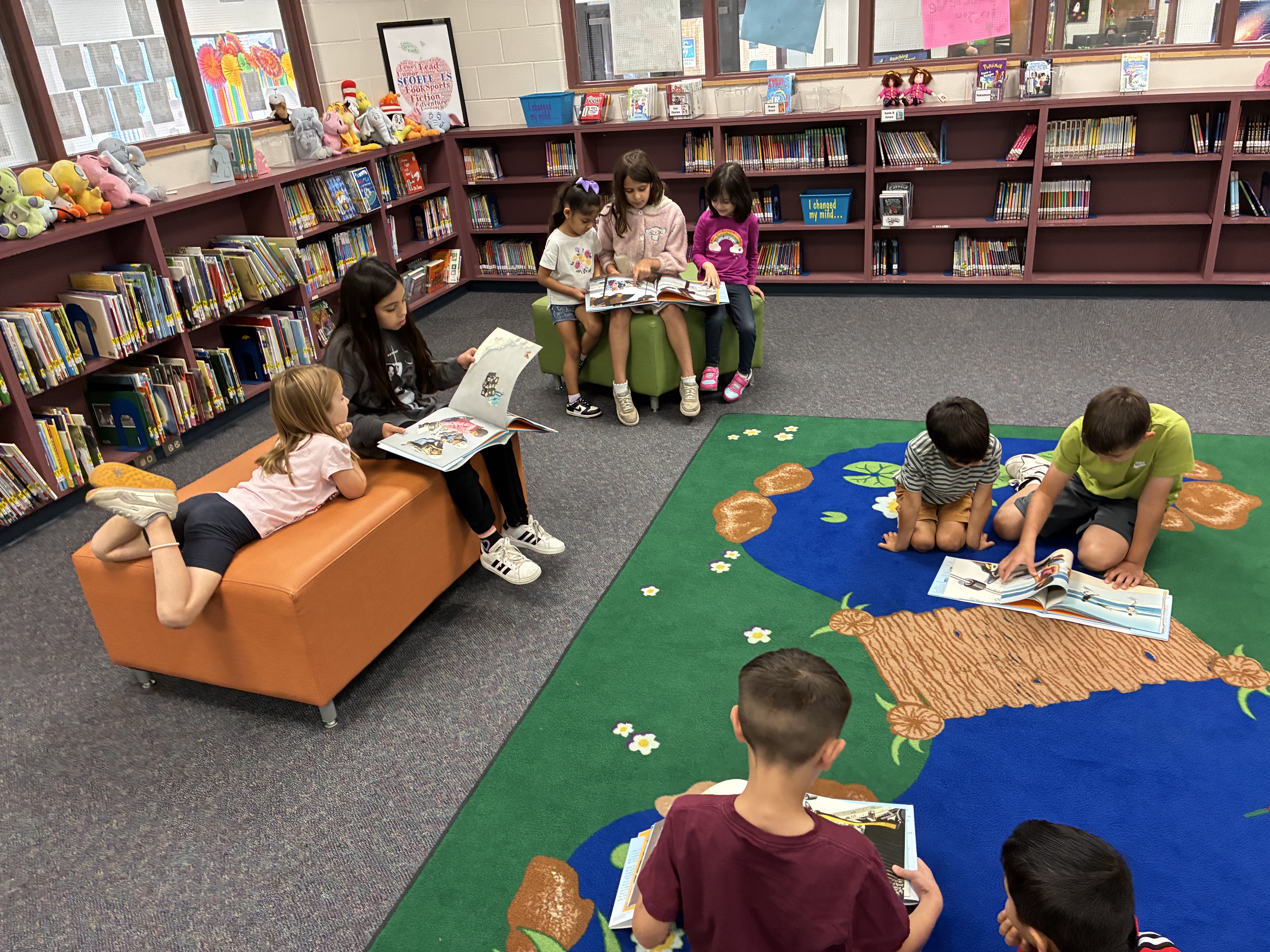Grades K-5th grade come to the library as part of their Discovery time, Days 5-8. Classes can sign up to come at additional times for lessons and/or projects as needed. Students can return and check out books on Days 1-4 during "Open Checkout" time.